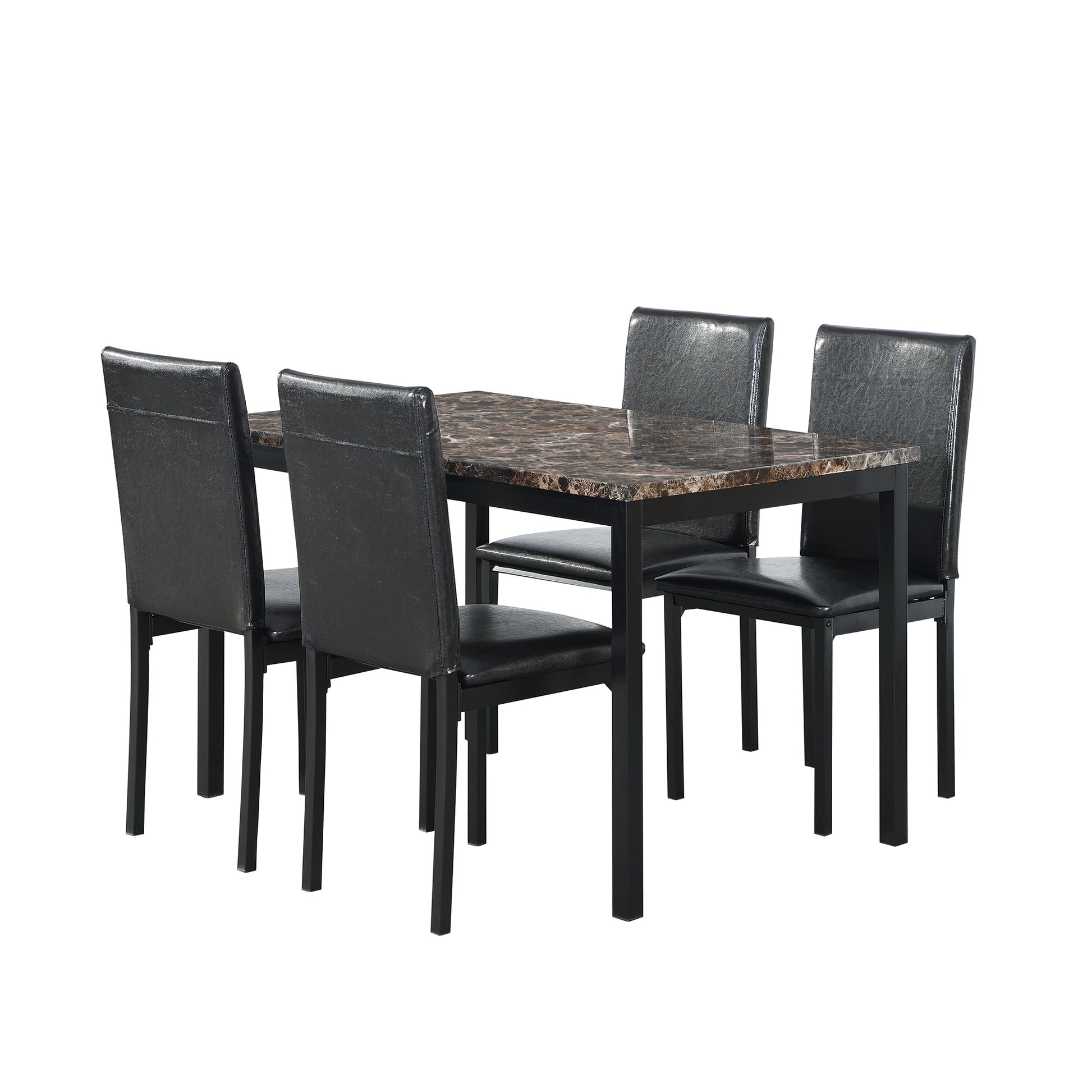 Modern Furniture 5 Piece Metal Dinette Set with Faux Marble Top in Black